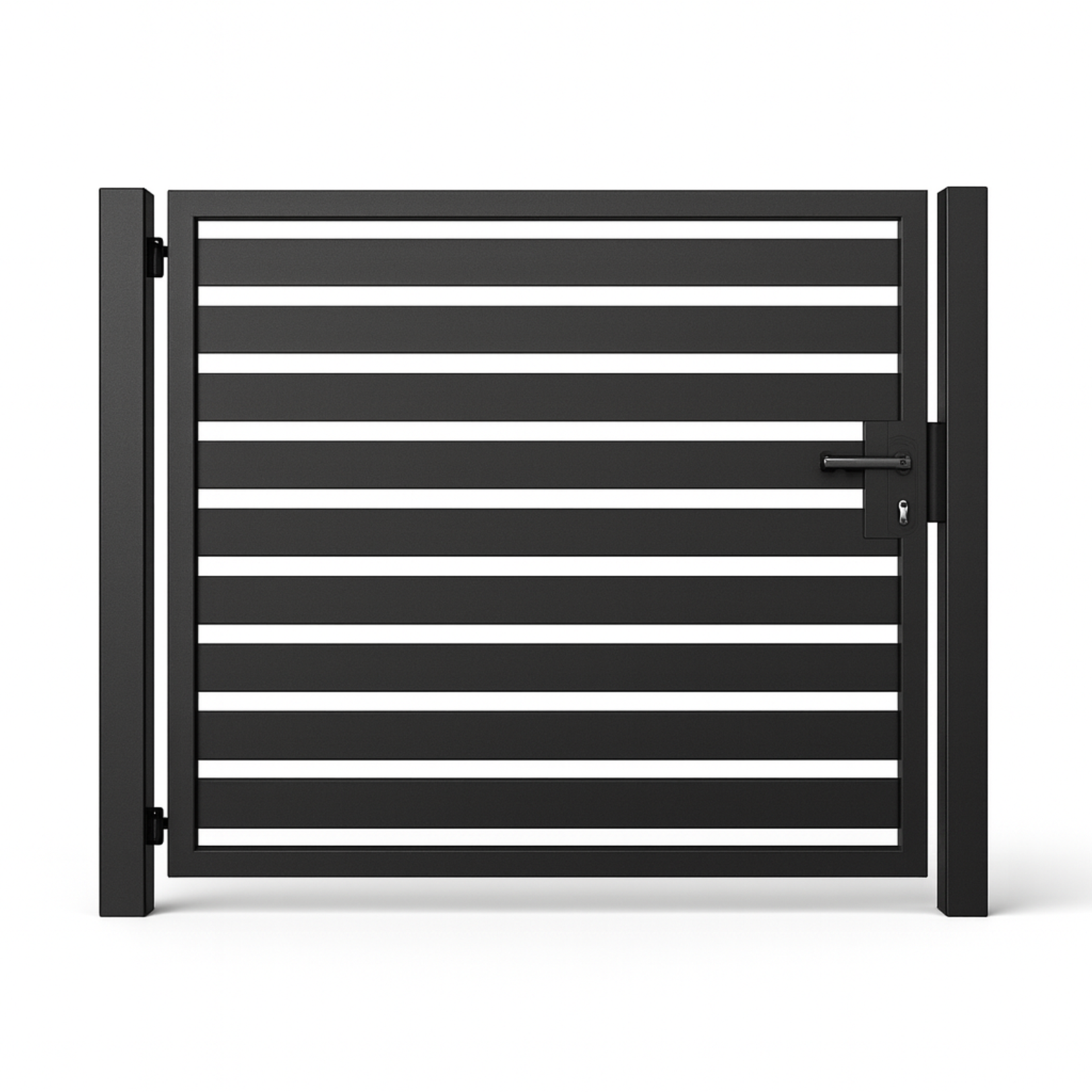 Zestaw zawiera: słupy, zawiasy, zamek, klamkę, rygiel z uchem na kłódkę.